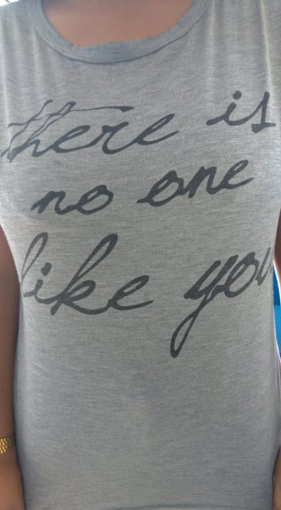 A mensagem desta camiseta é uma realidade. “There is no one like you.” em português fica: “Não existe ninguém como você”.